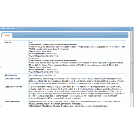 Institutional-level suite integrated with the hospital's/organization's EMR, EHR, or HIS with a regiocentric medicine database embedded into the HCP workflow to give real-time alerts.